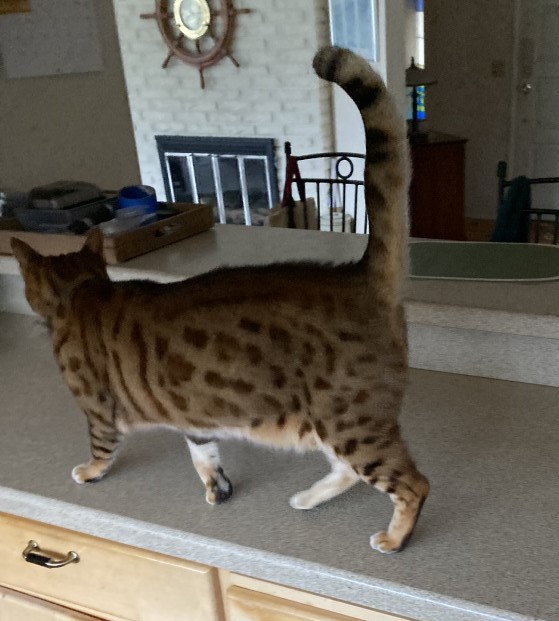 There’s teamwork involved in drying her tail off. A couple of passes by me with the closest dish towel and a bit of flag waving on her part quickly restore it to its fluffy glory (see photo). (Try that with a wet dog.) Then it’s time for catfood, a hug, and a long catnap. Is that fair? At this point we’ve both been up for about an hour. Why don’t I get to go back to bed too?