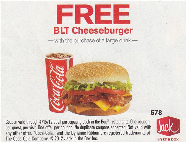 The coupon (see illustration) came in the mail this week with a pile of advertising circulars. “This can’t be right,” I thought, “Surely it’s the drink that’s free and not the sandwich.” I stand corrected. After all, who am I to questions “Jack”? In fast food circles many consider him to be a marketing and culinary genius.