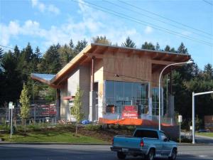 Two previous posts, Tallbucks and V-Bucks, show pictures of the Starbucks that’s being built at the corner of Kitsap Way and National Avenue in Bremerton. The post titles are interim names I gave the building at the time the photos were taken. A reader has suggested that the Mud Bay Blog sponsor a contest for a final name for the building as it nears completion (see photo).