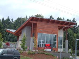 The new Starbucks is located in the Walgreens lower parking lot at the corner of Kitsap Way and National Avenue in Bremerton. It opened on June 29th. According to the Kitsap Sun article, there is inside seating for 85 plus patio seating and a drive-through window. It was built to earn LEED (Leadership in Energy and Environmental Design) certification for environmental building standards.