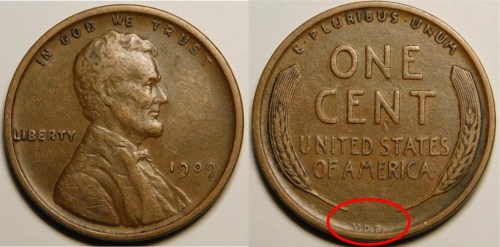 V. D. B. for Victor D. Brenner, arguably the best-known initials of any U. S. coin designer