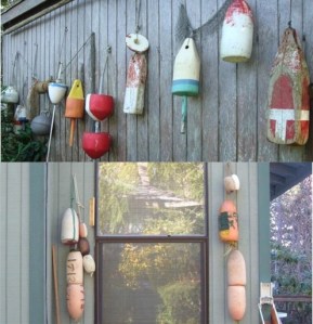 If you live near the water, I trust your answer to the question posed in the photo caption isn’t “none of the above.” Of course that assumes you, at some point, have seen and admired someone’s collection of weathered fishing buoys and possibly considered starting one. Sadly the group of floats and buoys I have salvaged from Puget Sound beaches, drab and lacking variety, is the one at the bottom. It’s a long way from matching the color and character of the upper collection, displayed on the shed of an unidentified Cape Cod beachcomber (and featured in Araks Sharing Beauty blog).