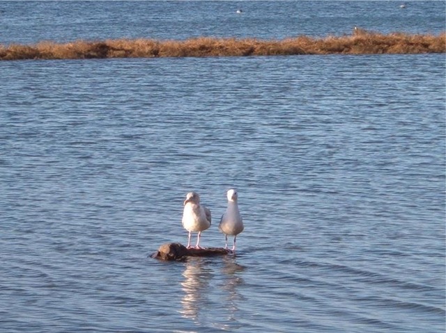 The photo shows a pair of seagulls on their own little rock, oblivious to all, as the tide slowly rises in Mud Bay. At least I think they are a pair based on observing them for about 20 minutes. The male (another guess) jumped in a few times and swam around the lagoon to impress his lady friend. There’s no word on whether that worked. But clearly he was smitten as he always returned to the rock.