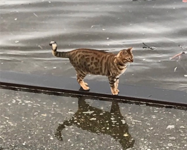 A lot happened in the four+ years while the tide was out for the Mud Bay blog. The biggest change? A new Mud Cat (short for Mud Bay Cat) now lives with me. She’s a two-year-old Bengal and her name is Tide. To mention the word for the third time in this opening paragraph, the photo was taken at high tide while she was patrolling the bulkhead in front of our house.