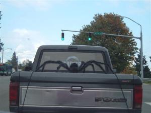 You can achieve a bit of notoriety by hauling around a giant arachnid that looks like it might leap out onto the hood of the car behind you. Even so, this big guy isn’t for me. If I looked into my garage one morning and saw one like it in the bed of my truck, I would slam the door and then freak out, hopefully in that order. I haul a lot of firewood and yard waste so spiders undoubtedly hitch a ride with me from time to time. But there aren’t any spiders in my truck right now. I just checked.