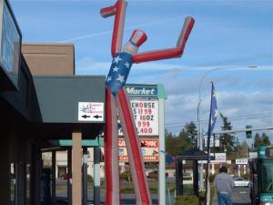 Actually the vehicle is a truck (see photo), but calling it a creepy car makes a better title. The previous post was also about Halloween decorations, although the holiday is still almost two weeks away. Similar to Christmas, people in Bremerton like to get ready for Halloween early, using their homes, businesses, and, in this case, vehicles to display a creepy creativity. The truck’s owner gets my Halloween award for this week.